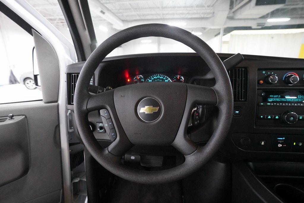 ** Call (616) 828-5908 for more information or to schedule your test drive today! **, 12-Passenger Seating (2-3-3-4 Seating Config), 15-Passenger Seating (2-3-3-3-4 Seating Config), 16 x 6.5 Steel Wheels, 2 Speakers, 3.42 Rear Axle Ratio, 3rd row seats: bench, 4-Wheel Disc Brakes, 4th-Row Bench Seat, ABS brakes, Air Conditioning, AM/FM radio, AM/FM Stereo w/MP3 Player, Bumpers: chrome, Chrome Appearance Package, Chrome Grille, Compass, Custom Cloth Seat Trim, Delay-off headlights, Deluxe Console w/Swing Out Storage Bin, Driver door bin, Driver vanity mirror, Driver's Seat Mounted Armrest, Dual front impact airbags, Dual front side impact airbags, Electronic Stability Control, Emergency communication system: OnStar and Chevrolet connected services capable, Forward Collision Alert, Front & Rear Chrome Bumpers w/Step-Pad, Front anti-roll bar, Front Bucket Seats, Front reading lights, Front wheel independent suspension, Full-Floor Color-Keyed Carpeting, Fully automatic headlights, Heated door mirrors, Heavy-Duty Rear Locking Differential, Illuminated entry, Lane Departure Warning System, Low tire pressure warning, Occupant sensing airbag, Overhead airbag, Panic alarm, Passenger cancellable airbag, Passenger door bin, Passenger seat mounted armrest, Passenger vanity mirror, Power door mirrors, Power steering, Power windows, Preferred Equipment Group 1LT, Rear air conditioning, Rear reading lights, Reclining Front Bucket Seats w/Inboard Armrests, Remote Keyless Entry, Remote keyless entry, Security system, Speed control, Tachometer, Theft Alarm Notification, Tilt steering wheel, Traction control, Trip computer, Variably intermittent wipers, Voltmeter, Wheel Trim w/Chrome Center Caps.